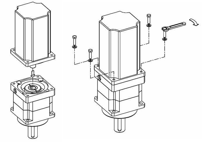 一個十分重要的過程是電動機與行星減速機的結(jié)合。行星減速機必須十分嚴密地粘附在發(fā)起機上。電機和行星減速之間不得有間隙。應運用具有恰當力的扭矩扳手擰緊將電機銜接到減速機的螺釘。
